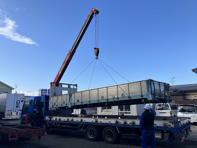 ボデーの乗せ替えも行っております。 2026 2/26 10トン車 アオリ アルミ縞板 クレーン付き平ボデー タダノ タダノ付平ボデー トラック トラック改造 ファイター ユニック 三菱ふそう 中型トラック 作業風景 大型クレーン付き平ボデー 大型トラック 大型車 太平興業 改造トラック 秋田鈴木電工 電柱 電柱積み 電柱運搬車 2026年2月26日 ボデー(荷台)を下ろすとこんな状態に 中古ボデーを下ろし、新品ボデーに乗せ替え可能です。 新品のボデーを製作している様子です。 この先どんなボデーに仕上がるかお楽しみに! 10トン車 アオリ アルミ縞板 クレーン付き平ボデー タダノ タダノ付平ボデー トラック トラック改造 ファイター ユニック 三菱ふそう 中型トラック 作業風景 大型クレーン付き平ボデー 大型トラック 大型車 太平興業 改造トラック 秋田鈴木電工 電柱 電柱積み 電柱運搬車 この記事が気に入ったら いいねしてね! よかったらシェアしてね! URLをコピーしました! URLをコピーしました! 新車完成!!電柱運搬車!!! この記事を書いた人 AkitaShatai 関連記事 新車完成!!電柱運搬車!!! 2025年11月19日 何を作っている?? 2025年8月21日 結局スタンダードな見た目が1番かっこいい説 2025年6月25日 スクラップ車完成しました! 2025年5月2日 こだわりの1台が製作ボデーなら叶えられる!? 2025年3月11日 台木入れ欲しくないですか? 2025年1月23日 トラクターヘッドも架装やってます 2024年12月13日 新車完成!いすゞフォワード 2024年10月28日 コメント コメントする コメントをキャンセルコメント ※ 名前 ※ メール ※ サイト 次回のコメントで使用するためブラウザーに自分の名前、メールアドレス、サイトを保存する。 上に表示された文字を入力してください。